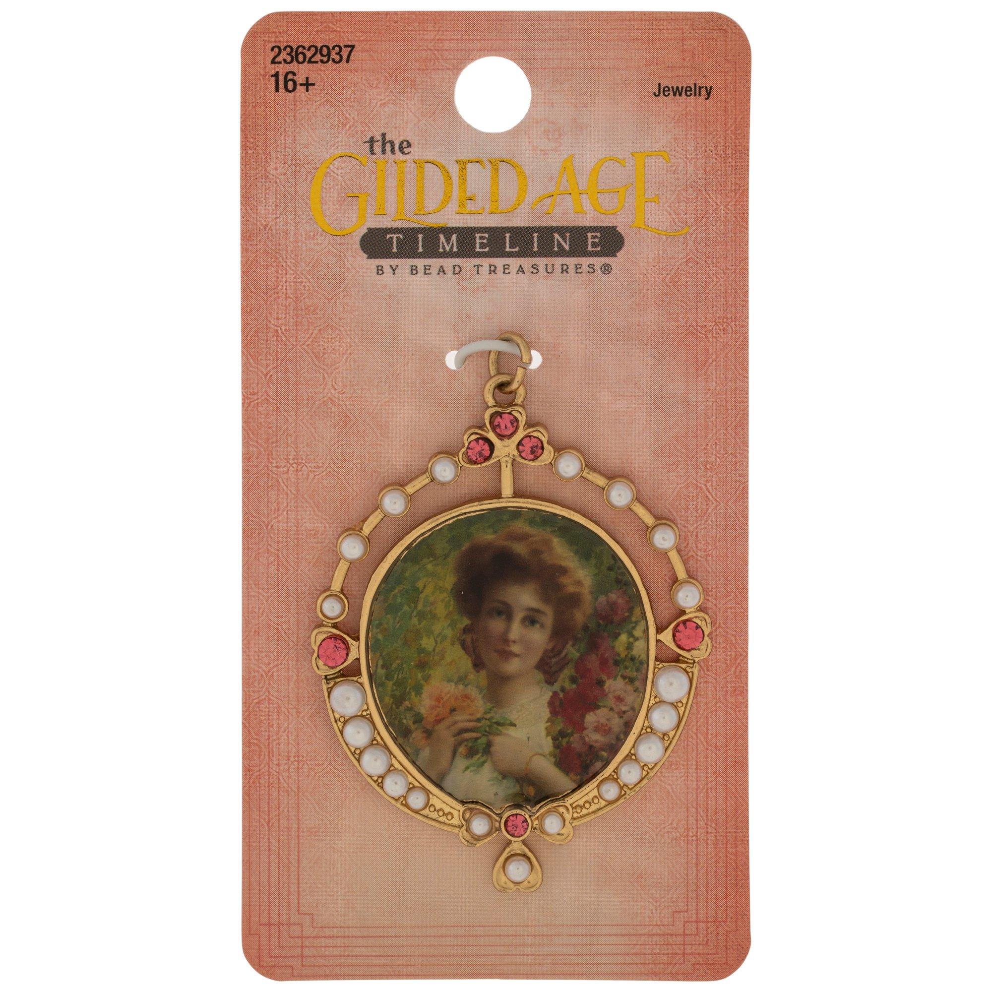 Vintage Lady With Glass Pearls Pendant