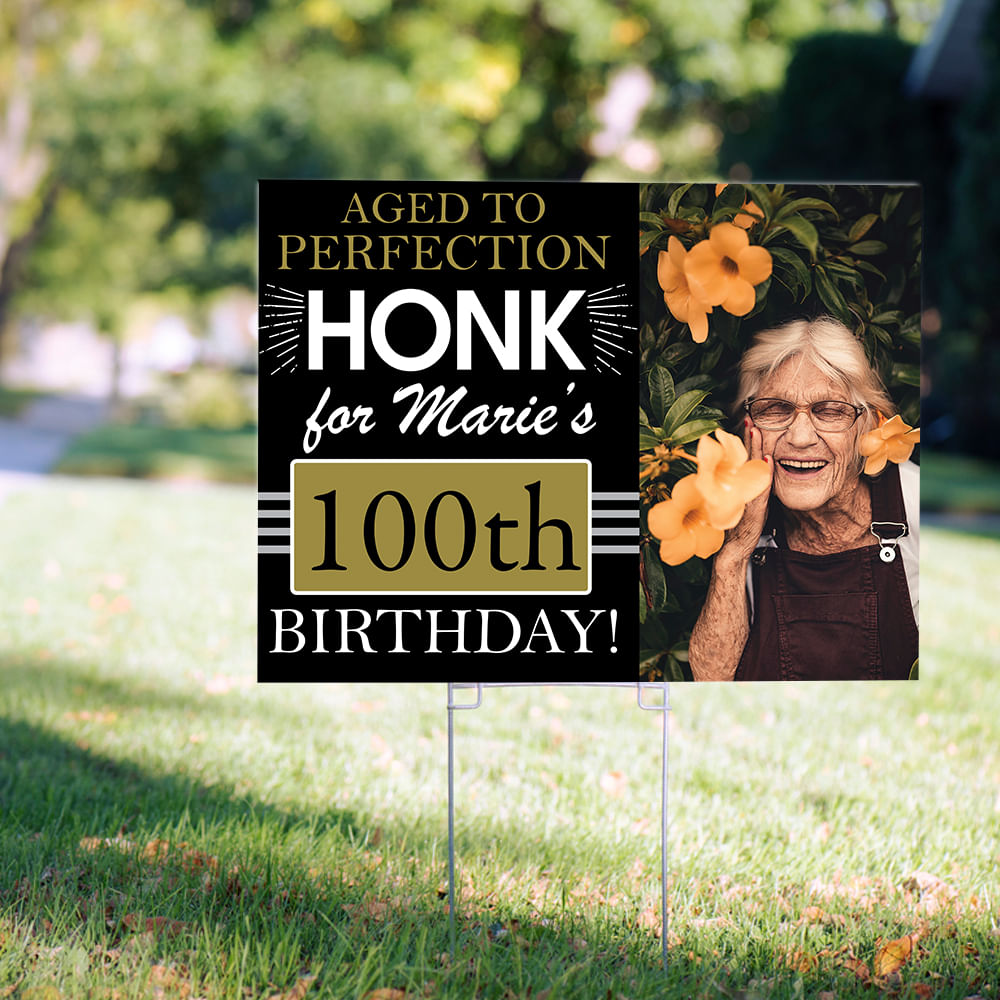 100th Birthday Yard Sign Personalized – Aged to Perfection with Photo