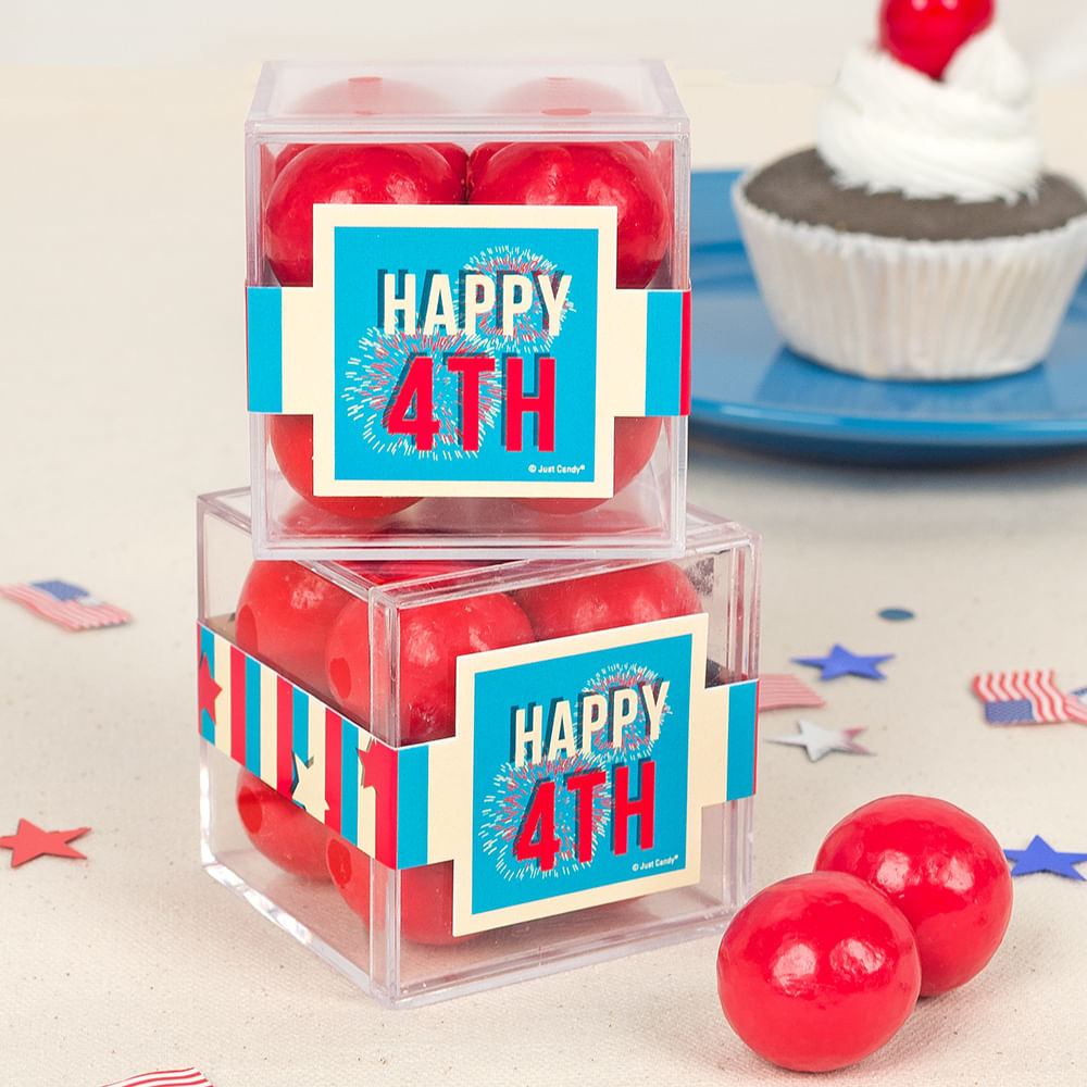 4th of July JUST CANDY® favor cube with Premium Malted Milk Balls