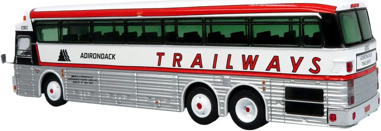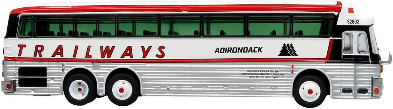Brand new 1/87 (HO) scale diecast model of 1969 Eagle Model 05 Coach Bus “Adirondack Trailways” White and Red Limited Edition to 504 pieces Worldwide die cast model by Iconic Replicas.